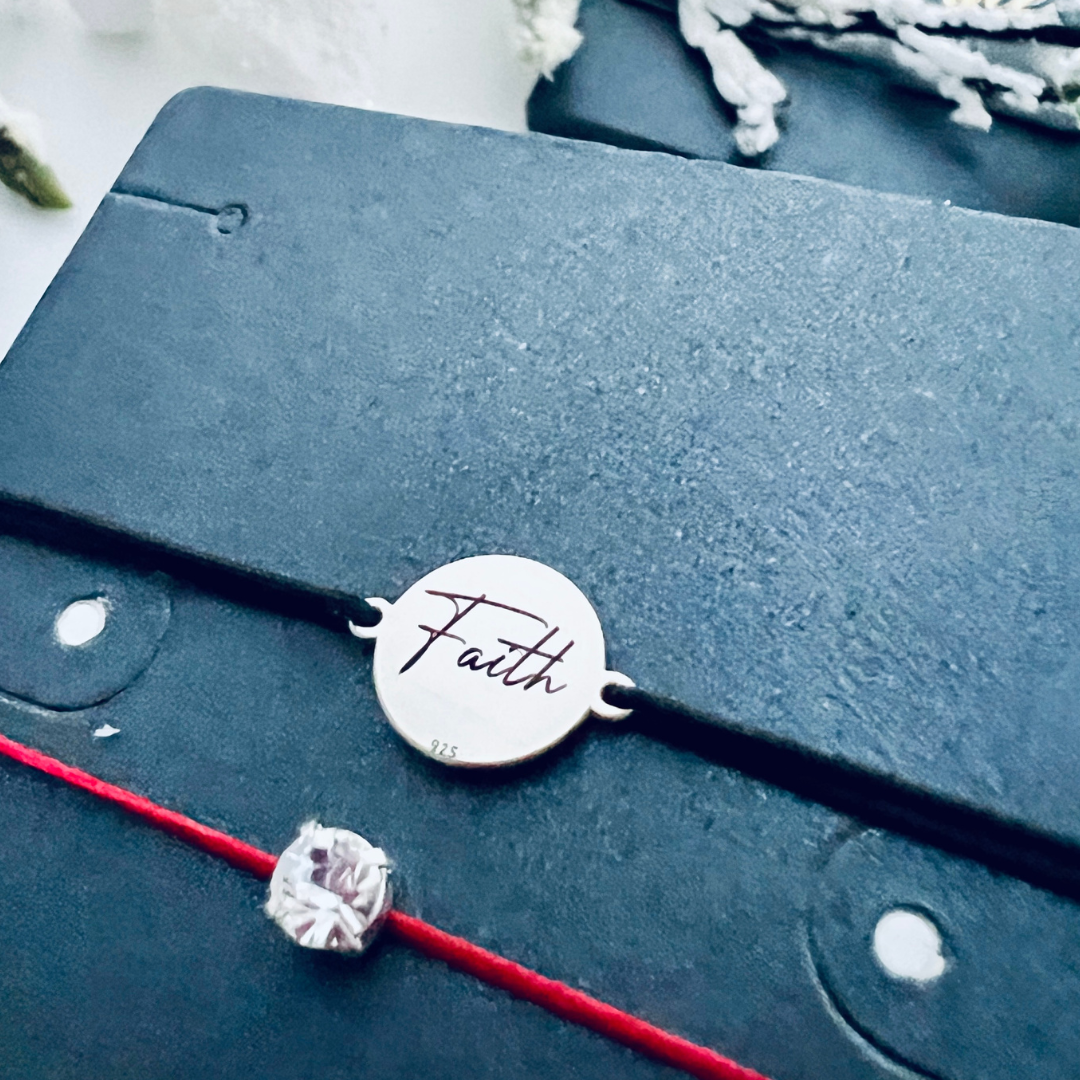 Gravăm cuvântul FAITH pe un bănuț delicat din argint 925, prins pe un șnur reglabil în culoarea dorită. Sau un alt cuvânt la alegere: îl poți adăuga în câmpul de personalizare.