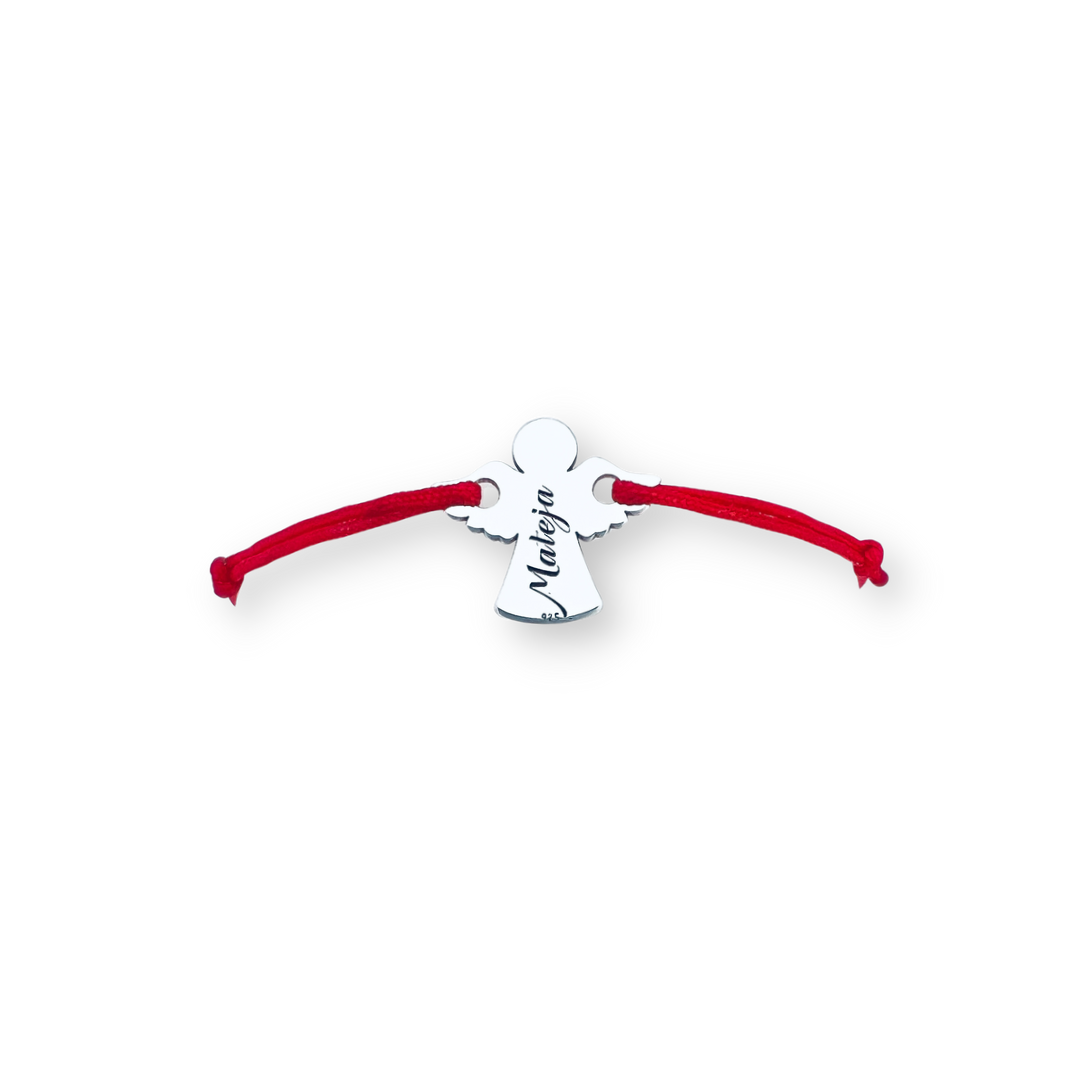 Alege textul sau simbolul dorit si comanda online o bratara personalizata delicata, cu pandantiv in forma de ingeras si snur textil reglabil in culoarea dorita!