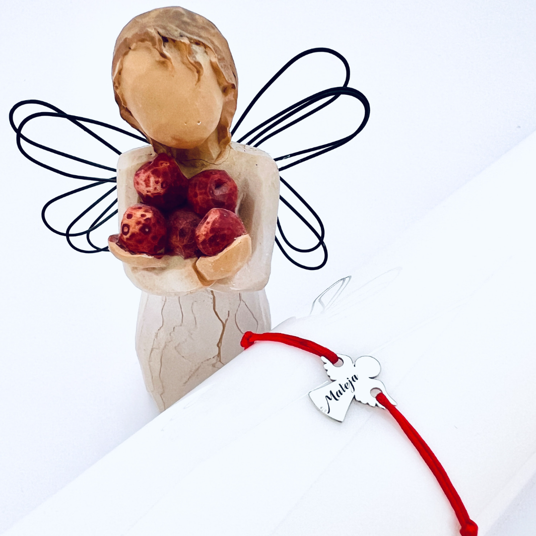 Brățara este realizată dintr-un pandantiv în formă de îngeraș și un șnur textil reglabil, disponibil în culoarea preferată. Designul este gândit pentru confort și versatilitate, astfel încât să poată fi purtat zilnic.