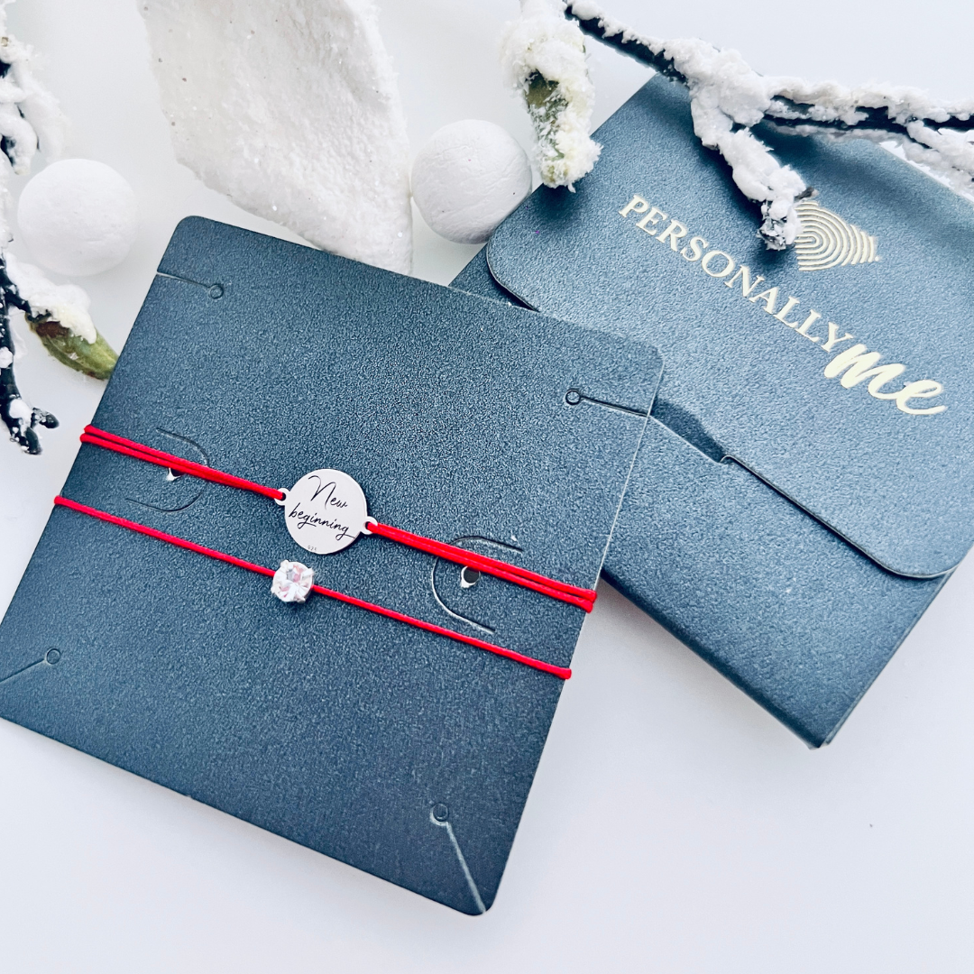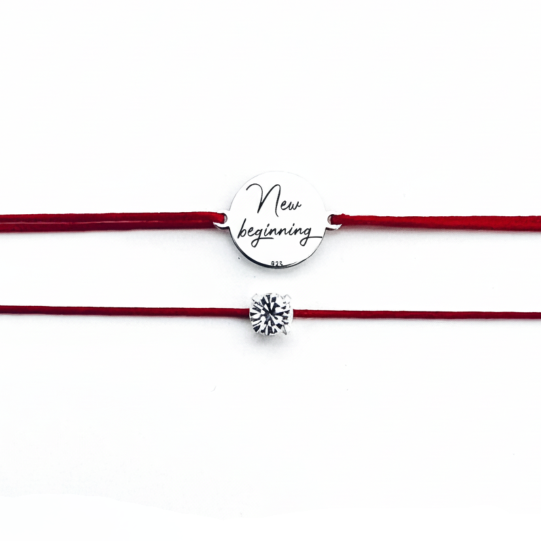 Brățară argint, personalizată șnur reglabil New Beginning + Brățară cu cristal
