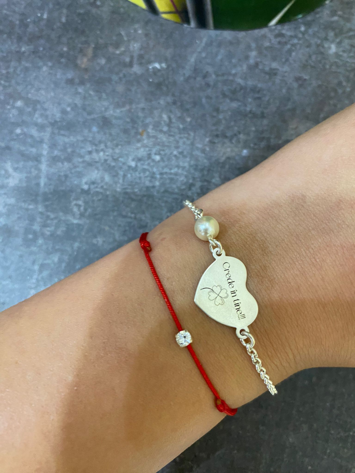 Bratara personalizata din argint, cu pandantiv inima si perla Swarovski este cadoul perfect pentru o fiinta draga.