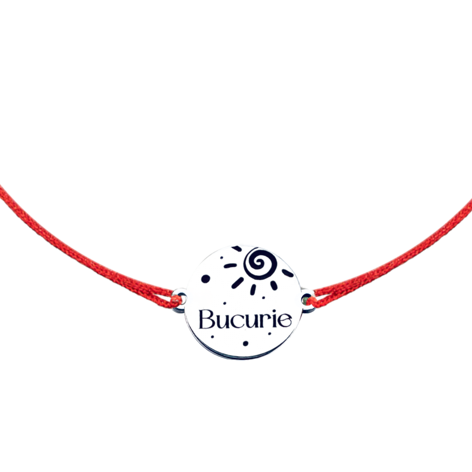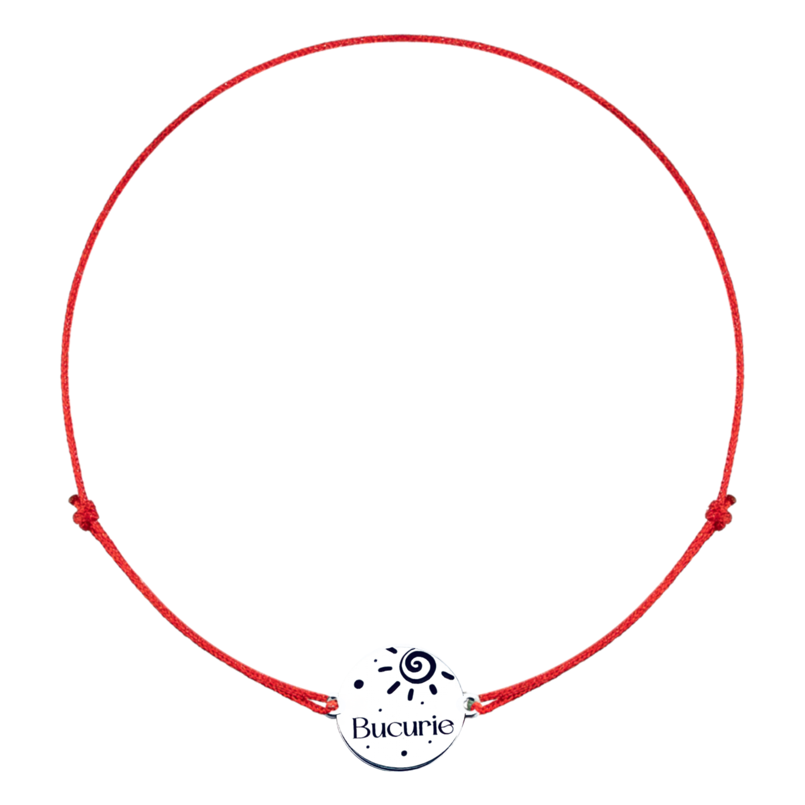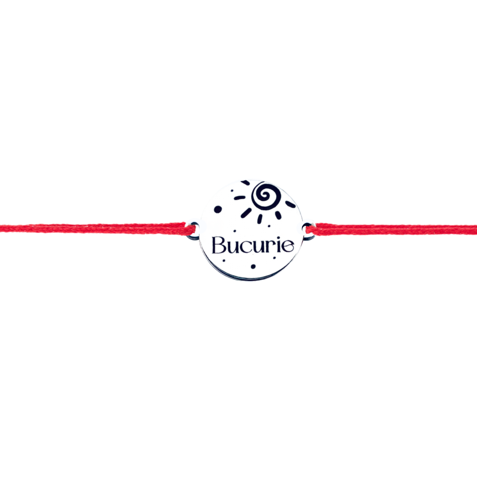 Bratara personalizata argint, snur reglabil textil - Bucurie