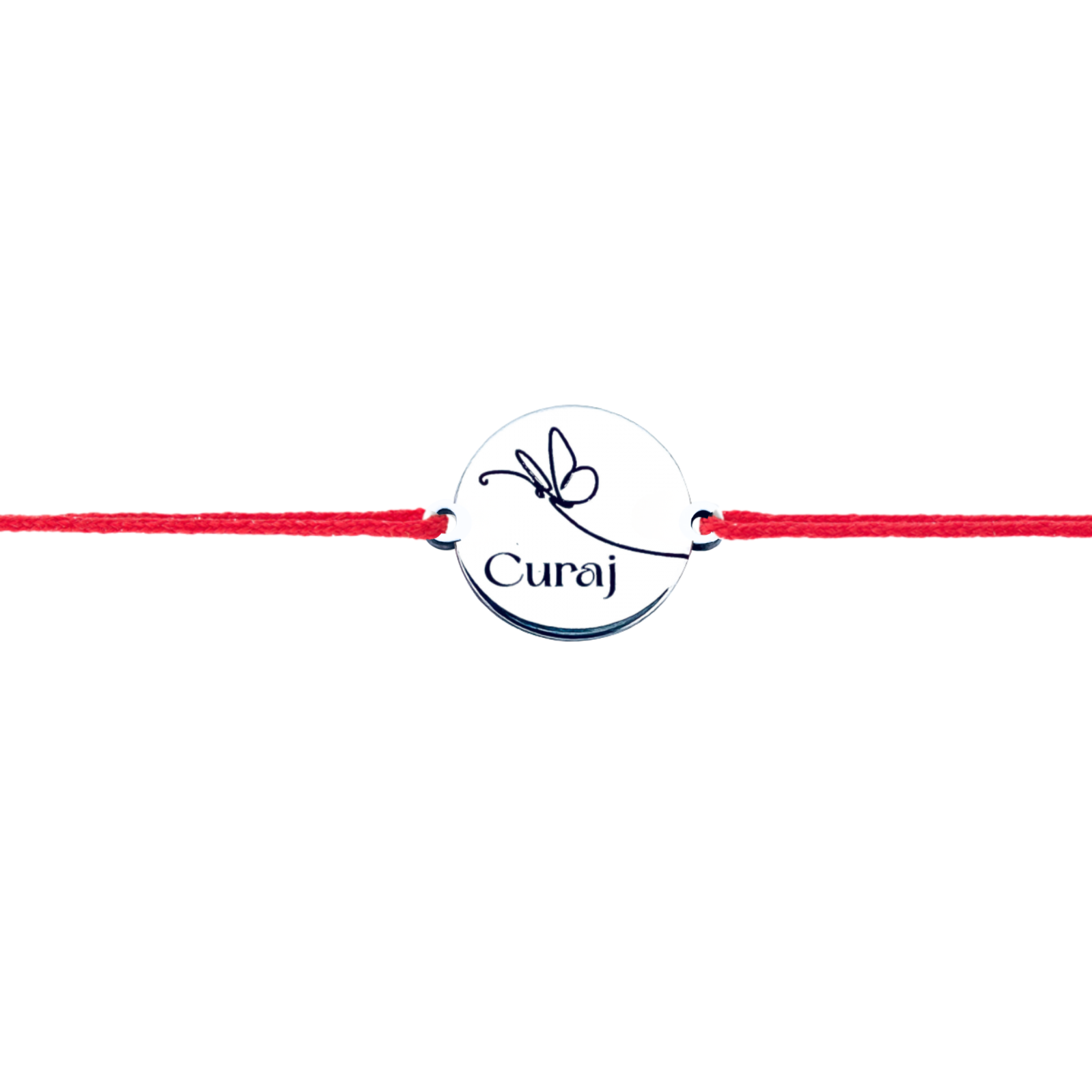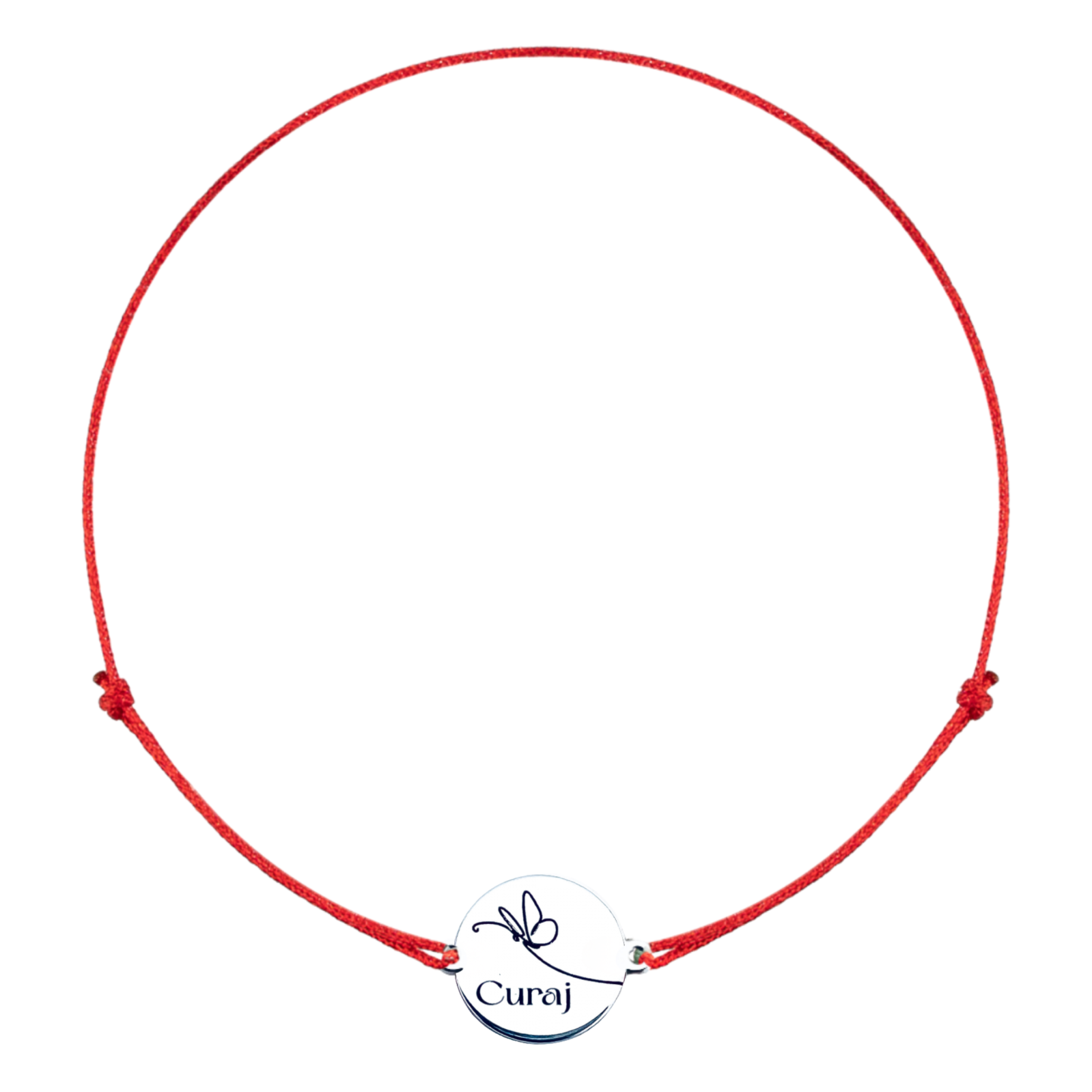 Bratara personalizata are un banut de 11 mm din argint si un snur reglabil textil, de foarte buna calitate, in culoare la alegere.