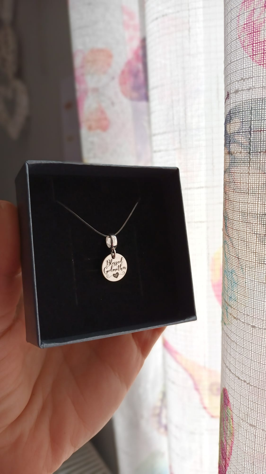 Descopera o colectie fascinanta de charmuri din argint pentru bratari. Acest charm in forma de banut, din argint, personalizat cu mesajul preferat se va potrivi perfect pe bratara ta! Totodata, reprezinta un cadou original, de suflet pentru nasa si nu numai.